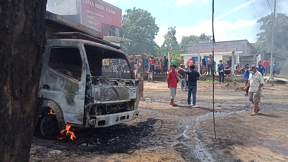 Selain pabrik minya, satu unit mobil batubara yang sedang terparkir di pinggir jalan pun juga terbakar. (sap)
