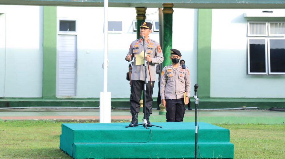 JAMBERITA.COM - Kapolda Jambi Irjen Pol Rusdi Hartono mepimpin apel gabungan personel TNI-Polri di lapangan Makorem 042/Gapu Jambi pada Senin, (24/10/2022).