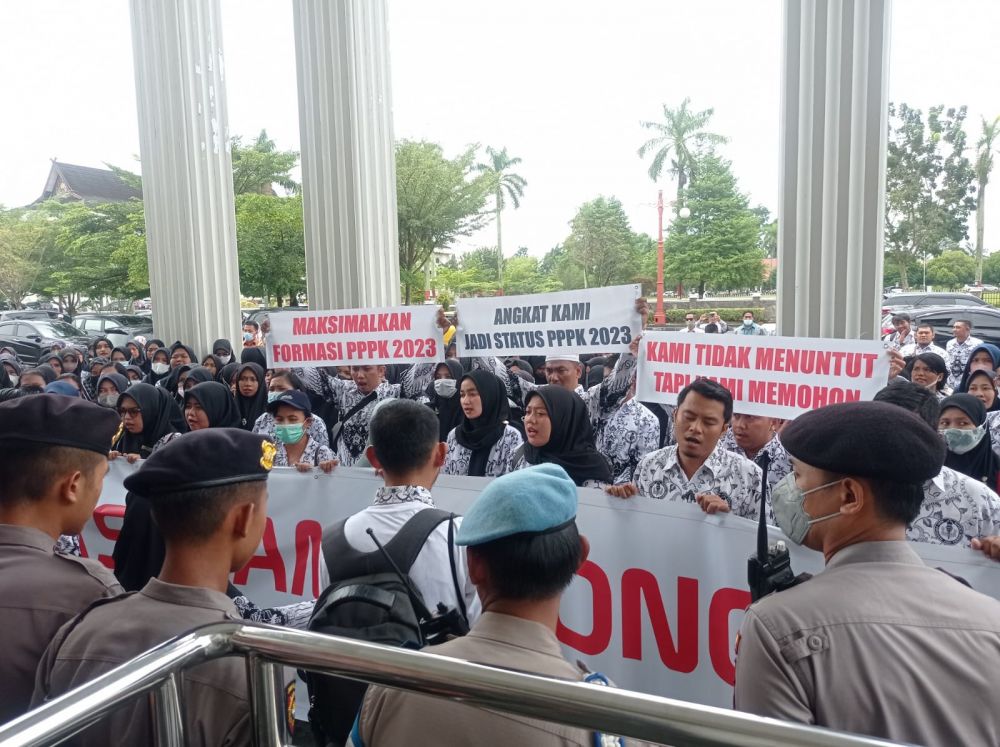 Kedatangan mereka ini sehubungan dengan rencana Pemerintah Provinsi (Pemprov) Jambi yang akan membuka formasi PPPK guru dalam penerimaan calon PPPK tahun 2023, maka dari itu mereka datang dengan membawa tuntutan.