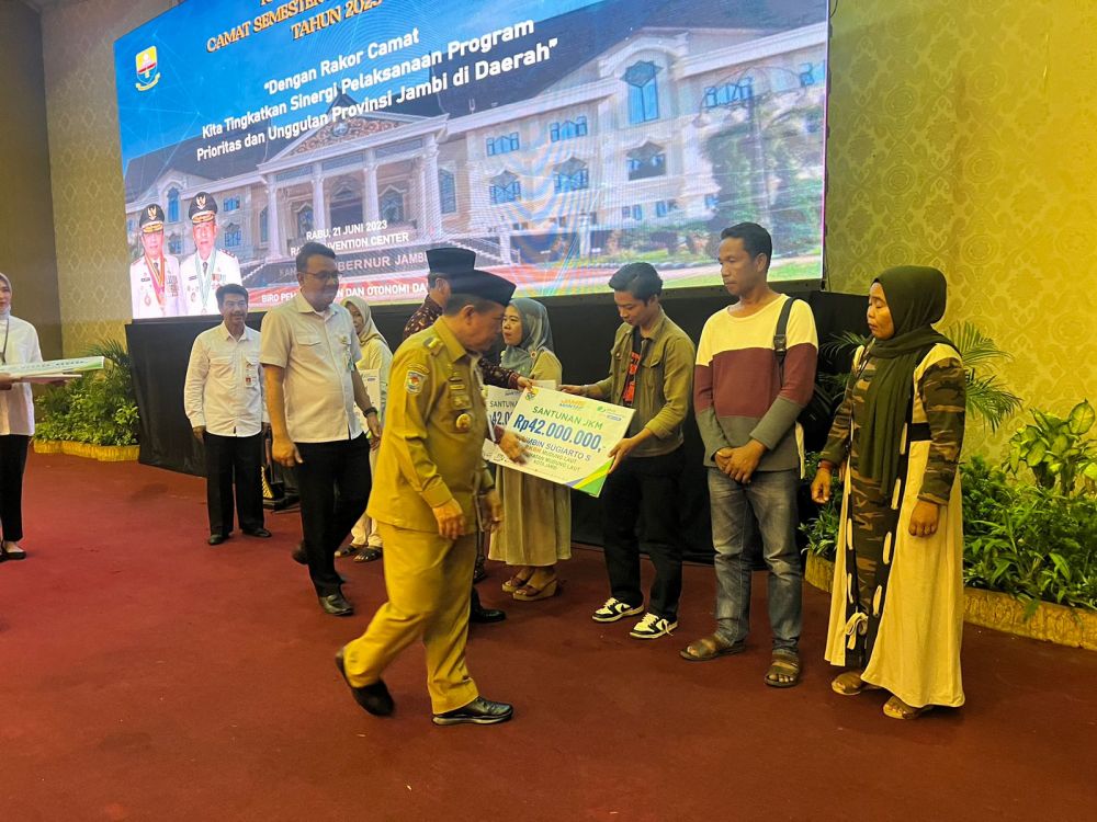 "Tadi ada cara rakor kecamatan juga diserahkan kepada 6 orang ahli waris masyarakat miskin yang meninggal. ini merupakan bentuk dukungan pak Gubernur dan keperdulian kepada masyarakat Provinsi Jambi khususnya, setiap kelurahan dan desa telah dilindungi oleh program BPJS Ketenagakerjaan melalui BKBK," ungkapnya.