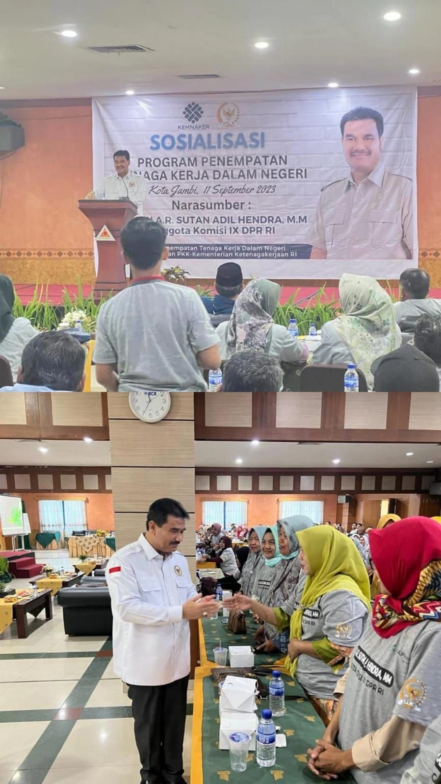 JAMBERITA.COM - Demi memperluas kesempatan kerja dalam negeri Anggota Komisi IX DPR RI Dr. Ir. H. A.R. Sutan Adil Hendra, MM (SAH) memberi pembekalan materi Sosialisasi Kementerian Ketenagakerjaan (KEMNAKER) dengan Tema "Program Penempatan Tenaga Kerja Dalam Negeri" Bersama Masyarakat Kota Jambi.