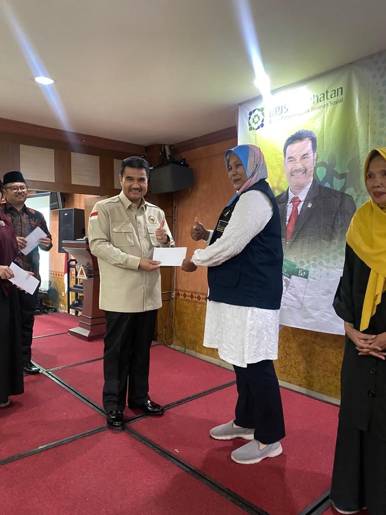 Pada kesempatan tersebut, Anggota Fraksi Gerindra DPR RI bersama BPJS Kesehatan menyampaikan informasi terkait Program JKN-KIS yang memiliki kanal layanan administrasi kepesertaan, informasi dan pengaduan, yang dapat dilakukan melalui tatap muka dan tanpa tatap muka.