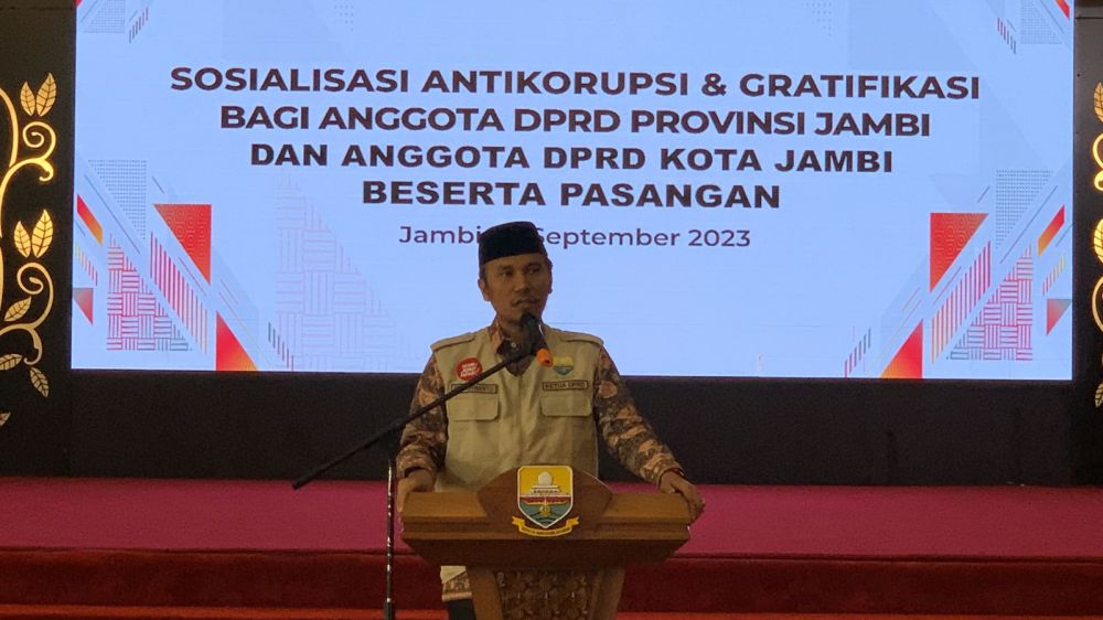 JAMBERITA.COM - KPK kumpulan Ketua dan Anggota DPRD Kota hingga DPRD Provinsi Jambi beserta istri dalam rangka sosialisasi pencegahan tindak pidana korupsi di Auditorium Rumah Dinas Gubernur Jambi, Jum'at (15/9/2023).