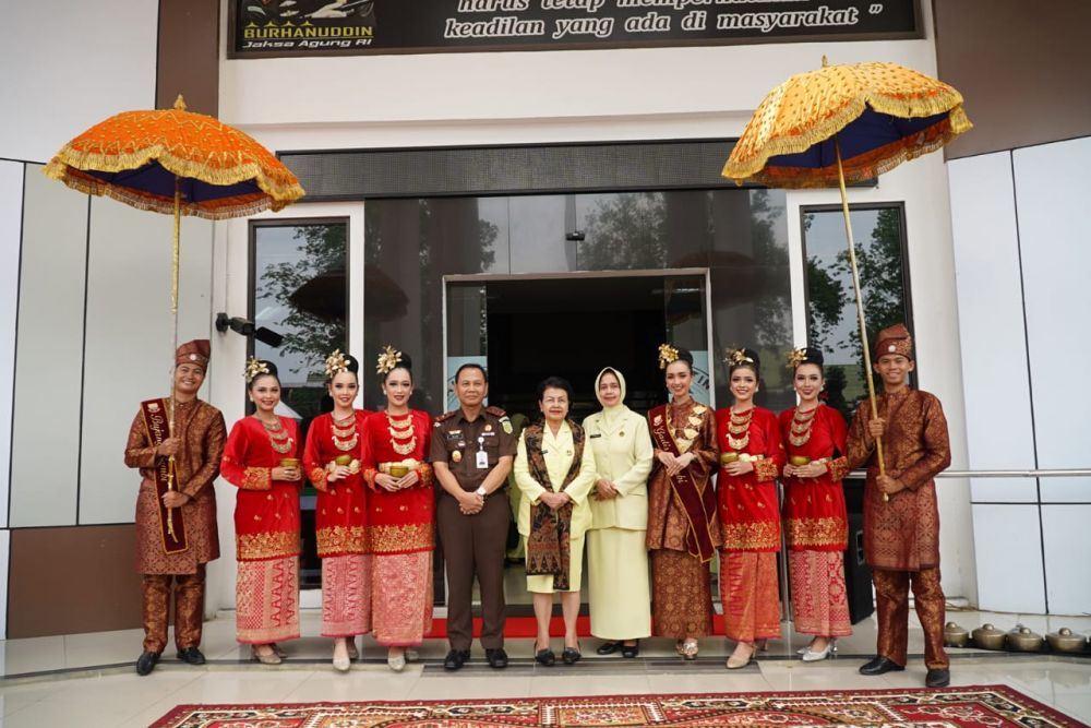 JAMBERITA.COM- Ketua Umum Ikatan Adhyaksa Darmakarini Pusat Sruningwati Burhanuddin tiba di Kantor Kejaksaan Tinggi Jambi dalam rangka kunjungan kerja kepada pengurus IAD Wilayah dan daerah Jambi.