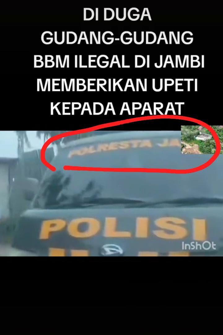 Video tersebut di unggah oleh akun media sosial tiktok milik @alionalionmeisen. Dalam video berdurasi 35 detik itu tampak mobil patroli milik Polresta Jambi keluar dari gudang BBM yang diduga ilegal. Dan terlihat dalam video itu dibagian depan mobil patroli tersebut bertuliskan Polresta Jambi.
