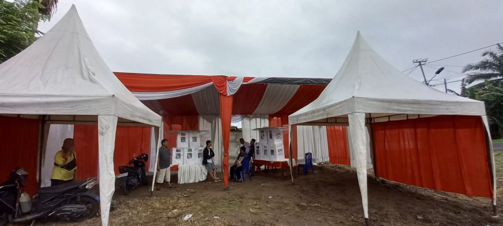 "Besok jam 6 sudah siap. harapannya warga bisa datang pagi karena khawatir hujan, sedangkan untuk kondisi hujan, agar tidak becek dan licin, kami bergotong royong akan membuat got kecil dibagian depan dan samping agar tidak banjir, karena mengingat lokasi TPS berada di lapangan terbuka," tegasnya.
