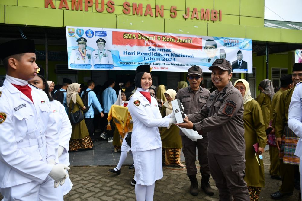 Jaksa Masuk Sekolah kali ini menggelar upacara peringatan Hardiknas di SMA Negeri 5 Kota Jambi.