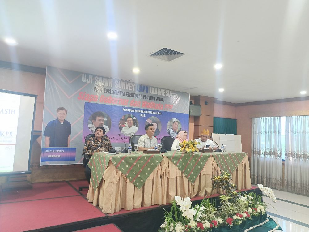 Kegiatan yang bertajuk Peta Episentrum Elektoral Pilgub dan Pilwako Jambi ini dilaksanakan di Grand Hotel dihadiri perwakilan media dan mahasiswa dalam format uji Sahih bedah kedalaman dan akurasi data survei.