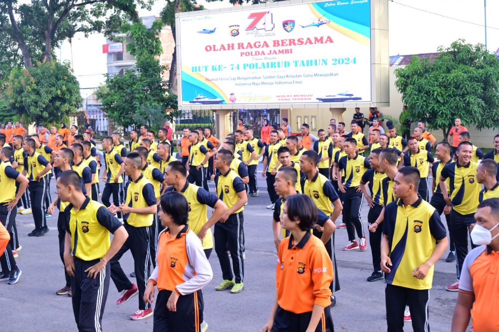 JAMBERITA.COM- Kepolisian Daerah Jambi menggelar olahraga bersama dalam Rangka HUT ke-74 Polairud Tahun 2024 pada Jum'at 15 November 2024.