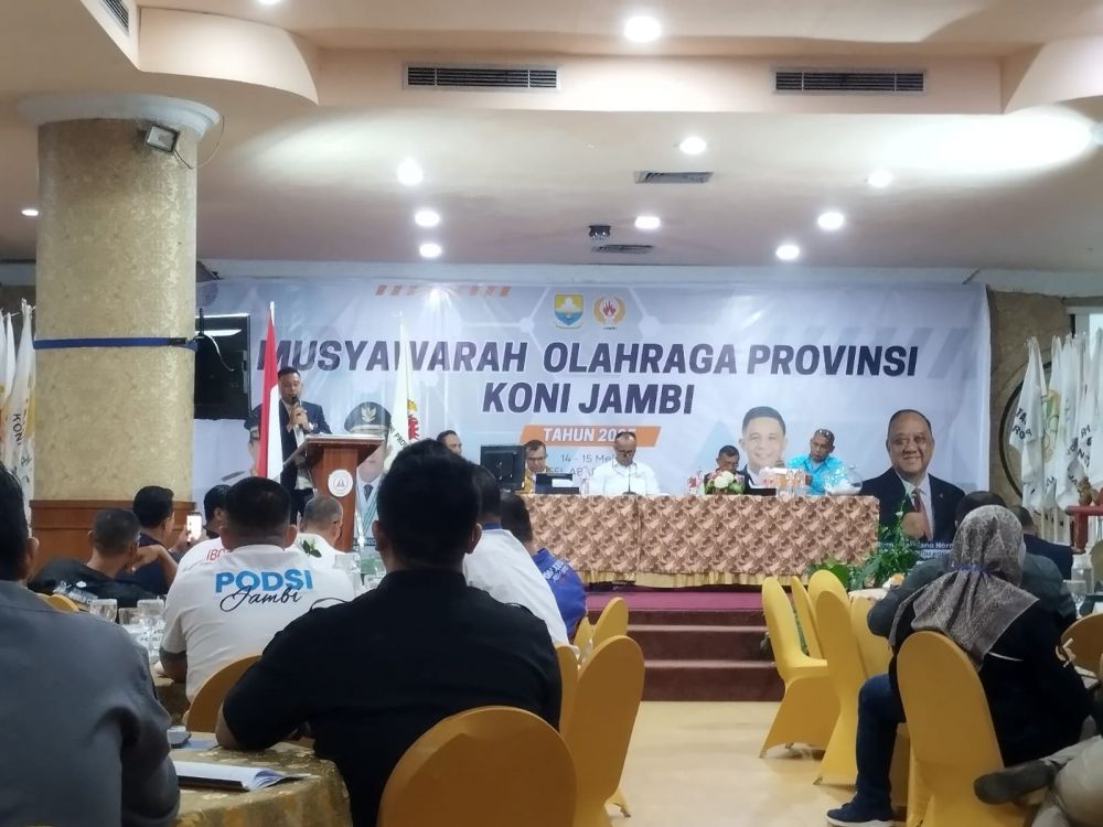 Mat Sanusi selaku Ketua Sidang mengesahkan kepengurusan KONI Provinsi Jambi masa bakti 2020 - 2024 dinyatakan demisioner setelah mendengarkan pandangan dari seluruh cabor.