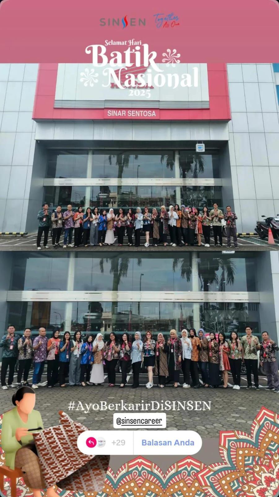 “Kami mengajak seluruh karyawan untuk menunjukkan kekompakan dan semangat kebersamaan melalui kebanggaan mengenakan batik.Terima kasih atas partisipasi aktif seluruh rekan kerja yang telah memeriahkan momen ini dengan penuh antusias, terutama melalui setiap postingan dengan tag Instagram @sinsencareer,” ujar Rendy.