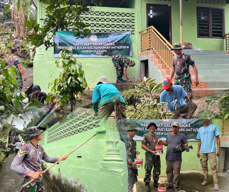 JAMBERITA.COM-Menjelang datangnya bulan suci Ramadhan, puluhan prajurit Korem 042/Gapu menunjukkan aksi nyata di tengah masyarakat. Personel TNI bersama warga setempat "menyerbu" Langgar Al Falah untuk melaksanakan karya bakti pembersihan tempat ibadah dan lingkungan sekitarnya, Minggu (15/2/2026).