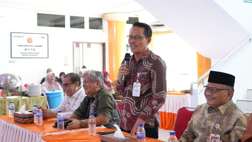 JAMBERITA.COM - Di tengah kesibukan mengelola institusi pendidikan tinggi, Rektor Universitas Jambi (UNJA), Prof. Helmi, menunjukkan sisi humanisnya saat menghadiri Halal Bihalal yang digelar Biro Perencanaan, Keuangan, dan Umum (BPKU). Bertempat di Gedung Rektorat Lama, Selasa (07/04/2026), suasana formal birokrasi mencair menjadi hangatnya pertemuan keluarga besar.