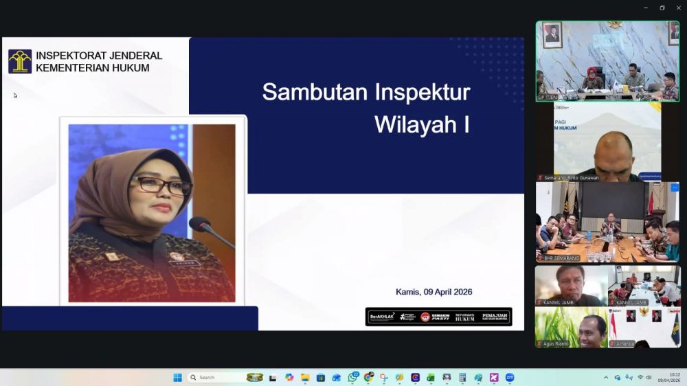 JAMBERITA.COM– Kantor Wilayah Kementerian Hukum (Kanwil Kemenkum) Jambi mengikuti kegiatan Inspektur Wilayah I Menyapa di Lingkungan Pengawasan Inspektorat Wilayah I pada Kamis, 9 April 2026. Kegiatan ini diikuti oleh para Pimpinan Tinggi Pratama (Pimti) secara luring dan daring sebagai bagian dari upaya penguatan tata kelola pemerintahan yang akuntabel dan berintegritas.