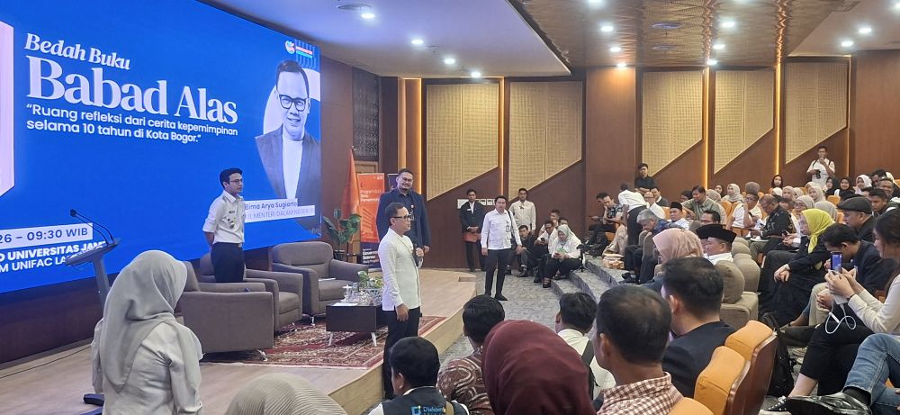 JAMBERITA.COM - Wakil Menteri Dalam Negeri (Wamendagri), Bima Arya Sugiarto, memberikan motivasi mendalam kepada ratusan mahasiswa Fakultas Ilmu Sosial dan Ilmu Politik (Fisipol) Universitas Jambi (UNJA) dalam acara bedah buku "Babad Alas", Rabu (15/4/2026).